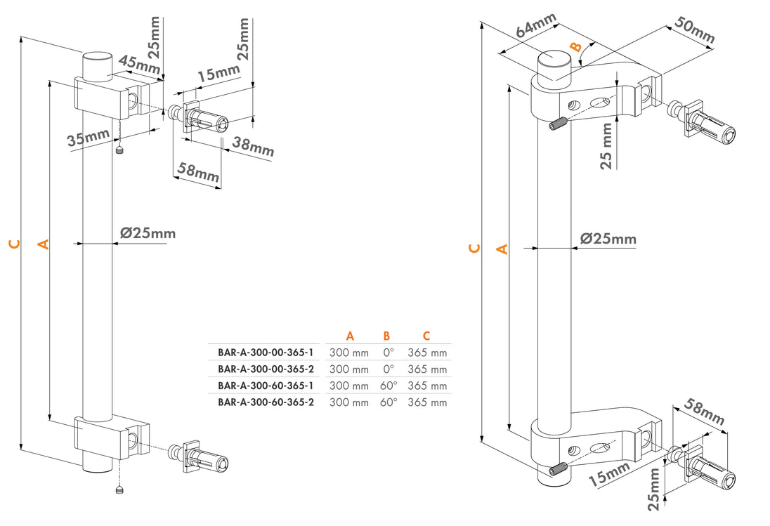 BAR-A anoduoto aliuminio rankena su tiesiu arba kampiniu tvirtinimu. Galimi vienpusės ir dvipusės rankenos variantai.