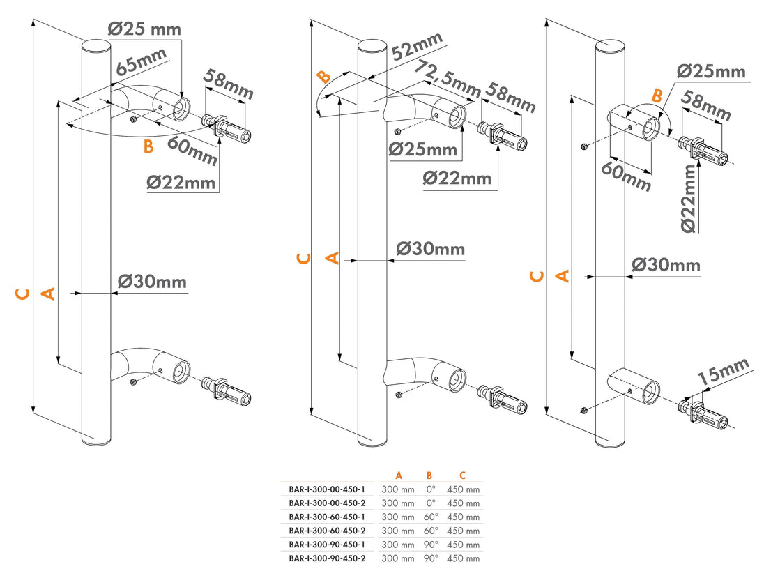 BAR-I nerūdijančio plieno rankena su tiesiu arba kampu išlenktu tvirtinimu. Galimi vienpusės ir dvipusės rankenos variantai.